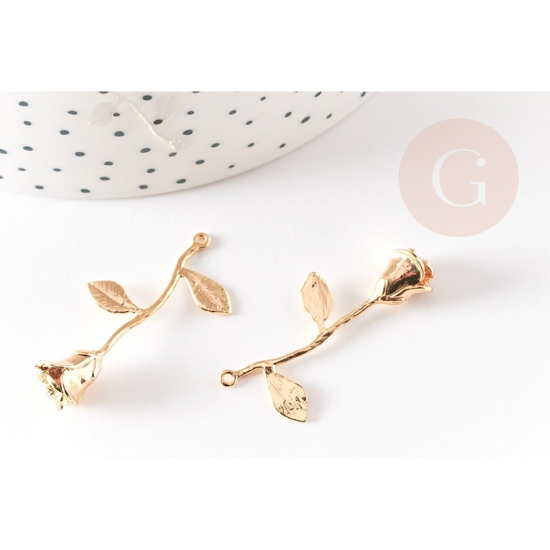 To create magnificent necklaces, earrings and bracelets, adopt these roses, flowers in 18K gold-plated brass Length: 37mm Width: 21mm Thickness: 9mm Ring: 1mm Sold individually Guaranteed nickel, lead and cadmium free. This pendant is sold without the ring