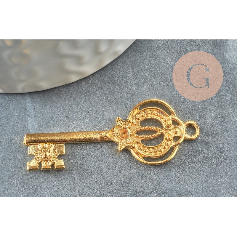 18k gold plated zamac key charm, jewelry creation, love pendant, key pendant, 41mm, x1 G3792