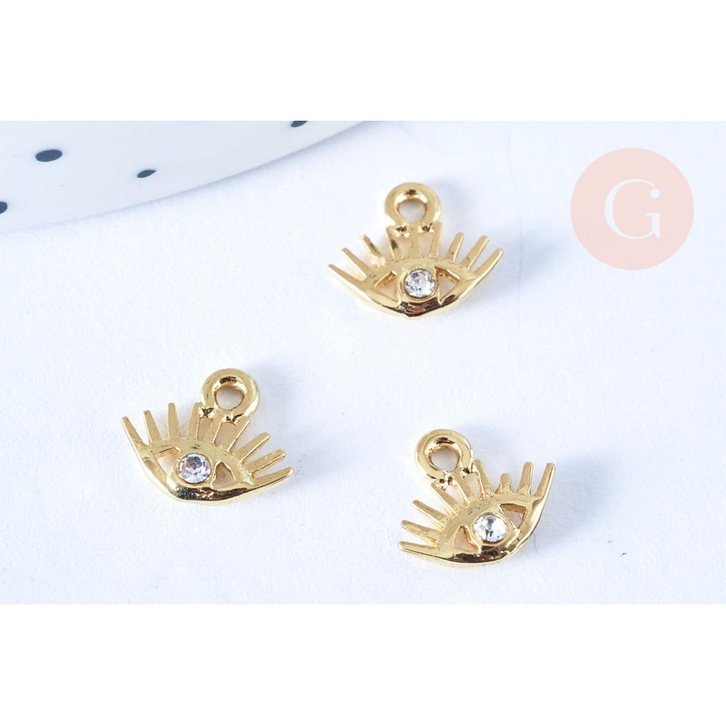 An adorable golden eye pendant with a white zircon in the center to use in all your creations. The Third Eye is considered a symbol of protection in many cultures? this pendant is therefore the ideal jewelry component for making lucky jewelry. This small l