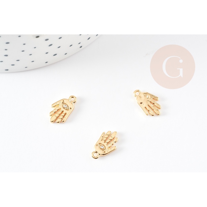 The 15mm 18K gold zamac protective eye hand charm is a unique piece that allows you to express your style while benefiting from the symbolism of the protective eye . Use it in your DIY jewelry creations to add a touch of luck and shine to your creations. H