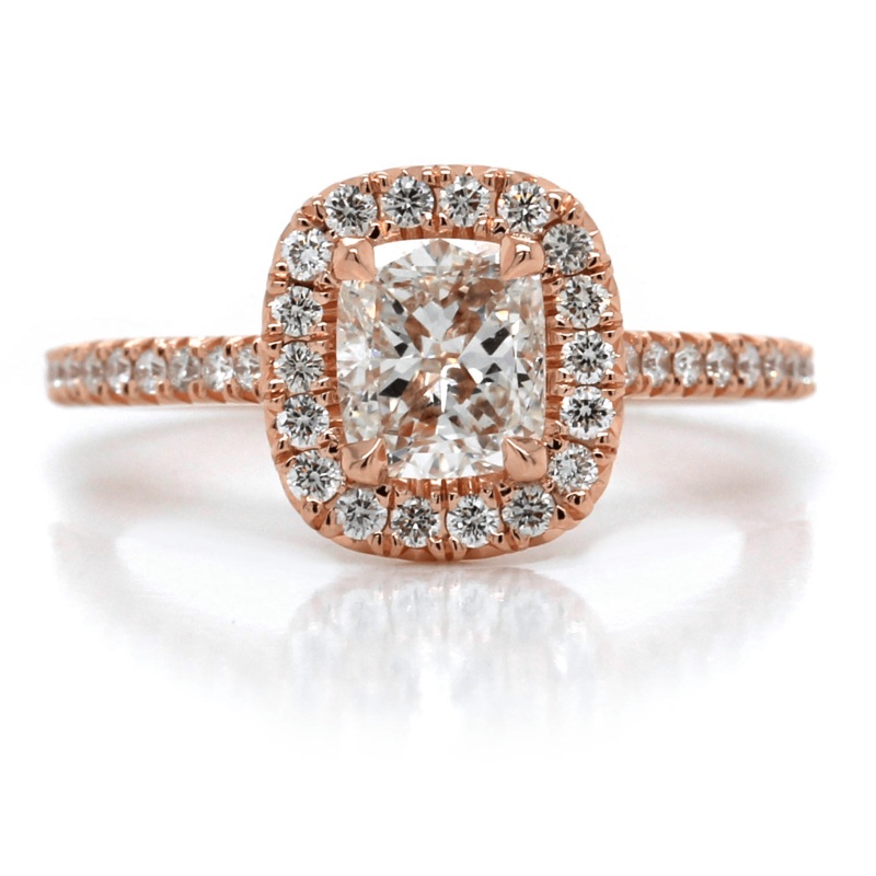 18K Rose Gold Cushion Cut Diamond with Halo Engagement Ring