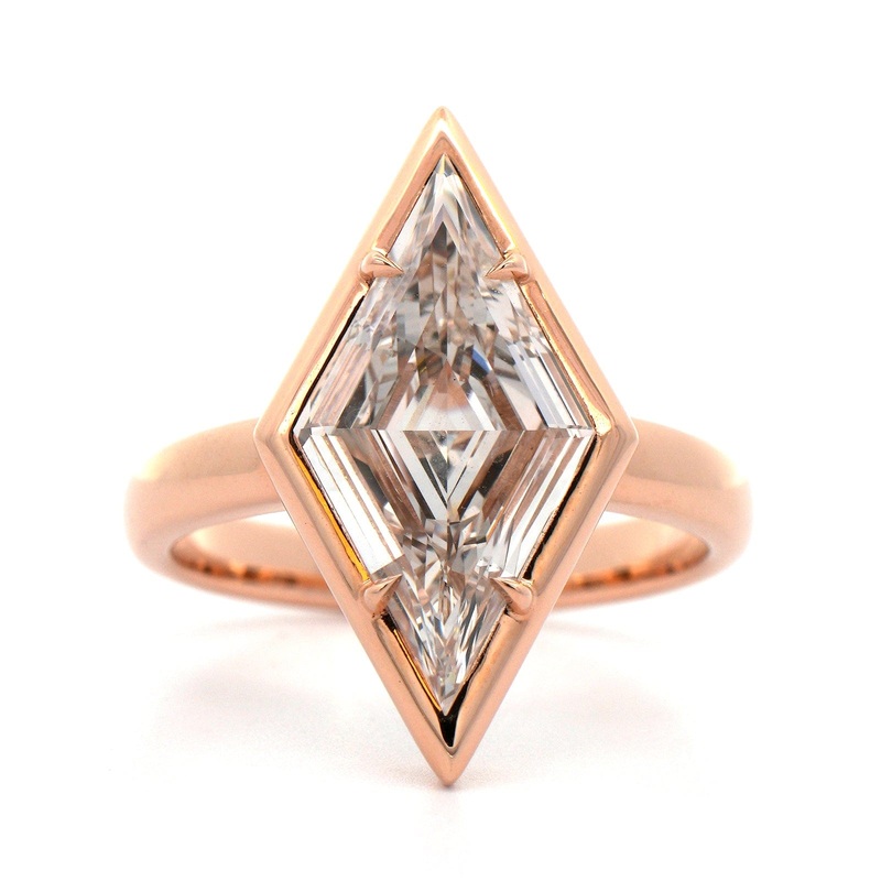 18K Rose Gold Lozenge Cut Pinkish Brown Diamond Ring