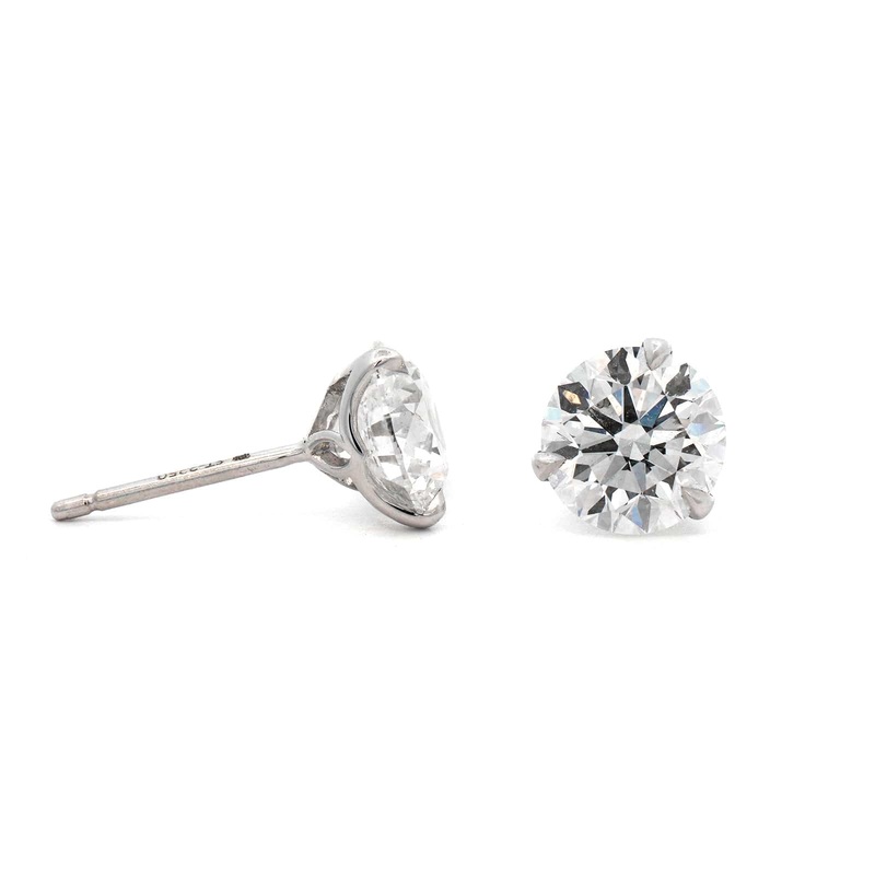 18k white gold stud earrings featuring round diamonds.18k white goldDiamonds approx. 3.40ctw., I/SI1