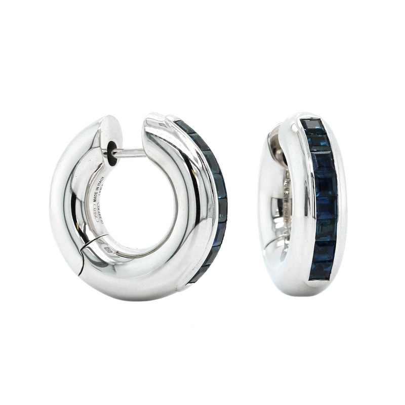 18K White Gold Channel Set Sapphire Huggie Earrings