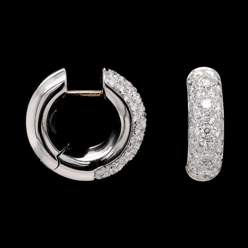 18K White Gold Estate Pave Diamond Hoop Earrings