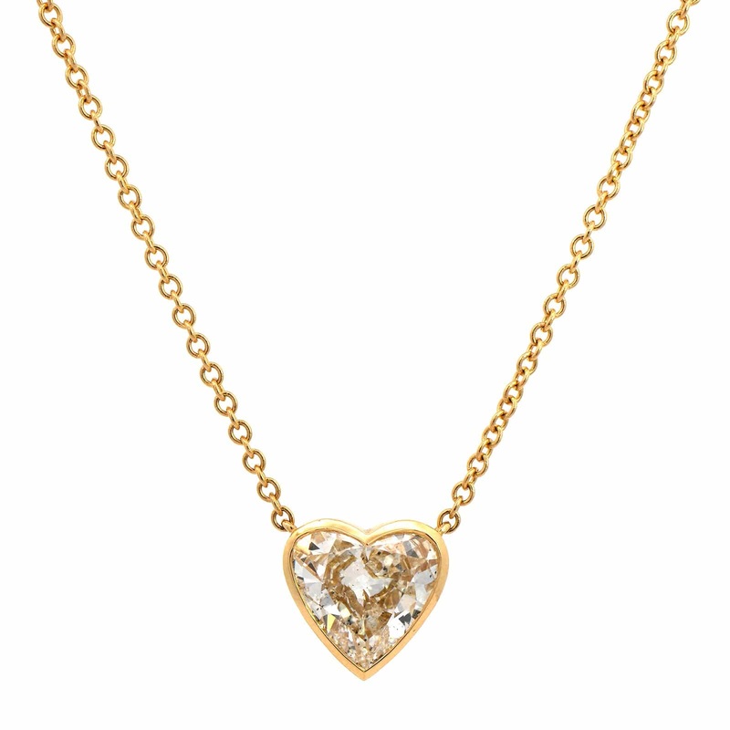 18K Yellow Gold Bezel Set Diamond Heart Pendant Necklace