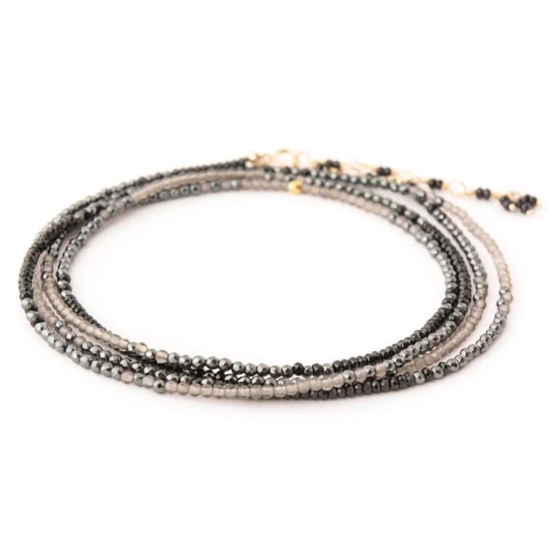 18K Yellow Gold Black Spinel Hematite and Slate Moonstone Ombre Wrap Bracelet