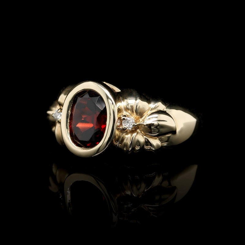 • The ring is set with one oval cutgarnet weighing approx. 1.71cts.