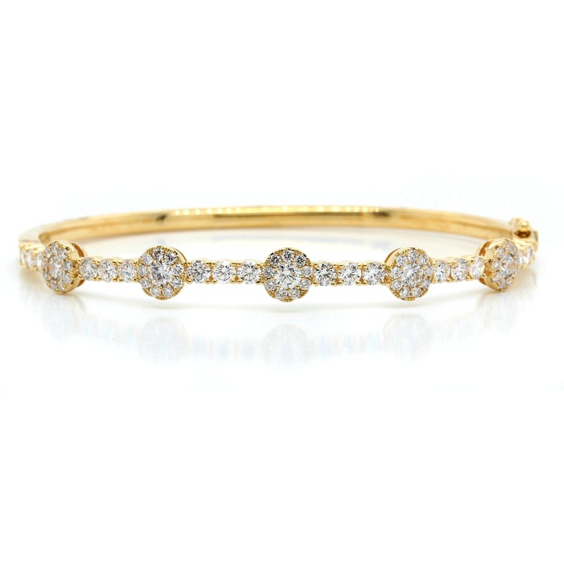 18K Yellow Gold Four Floral Diamond Station Bracelet