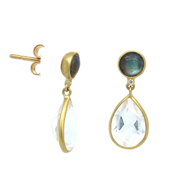 18K Yellow Gold Labradorite and Rock Crystal Drop Earrings