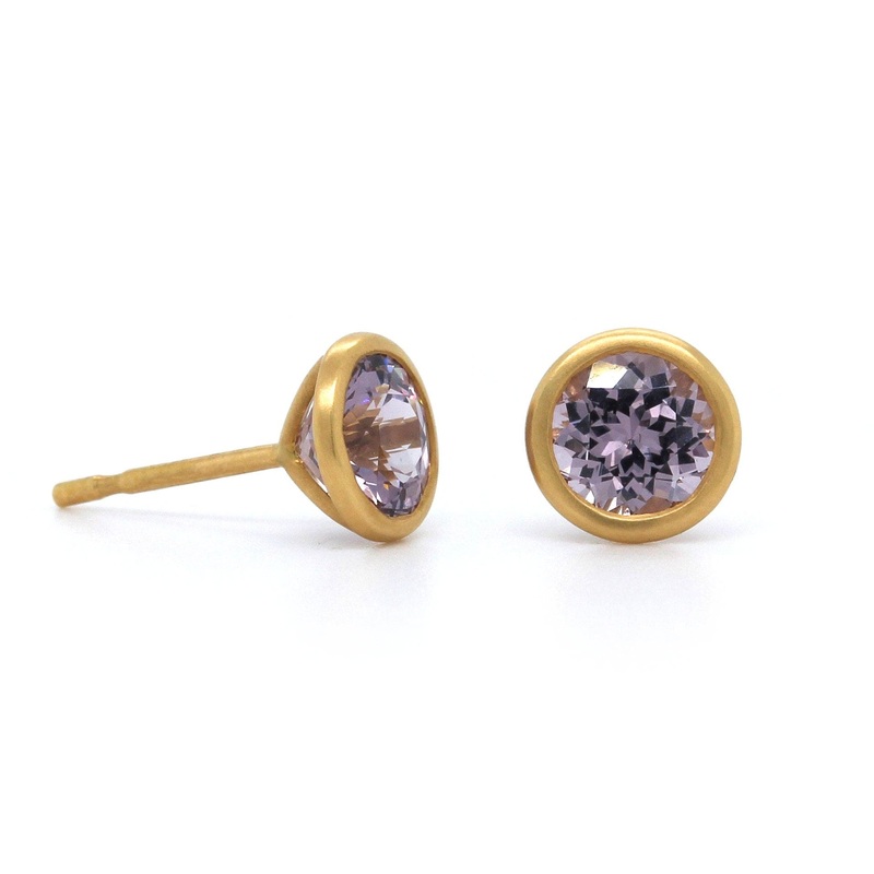 18K Yellow Gold Lavender Spinel Stud Earrings