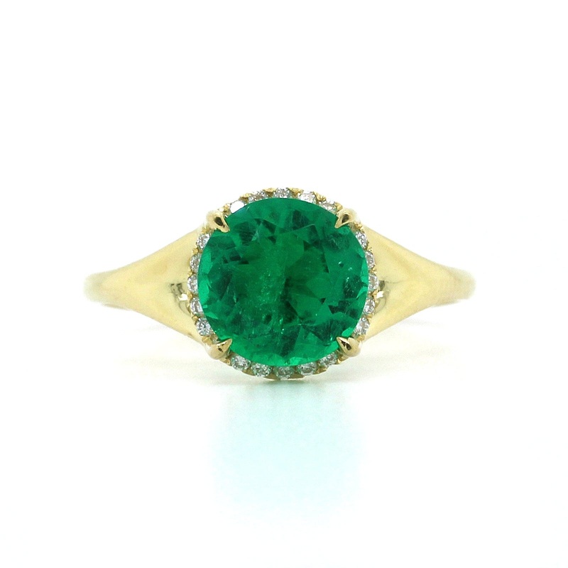 18K Yellow Gold Round Emerald Diamond Halo Ring
