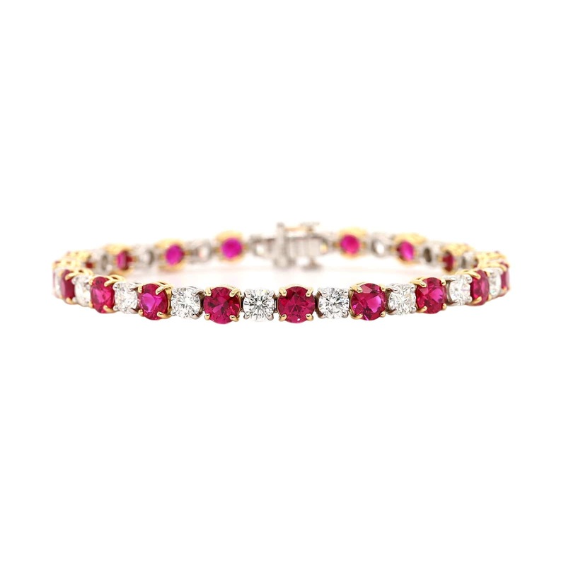 18k yellow gold bracelet with alternating round rubies and diamonds.