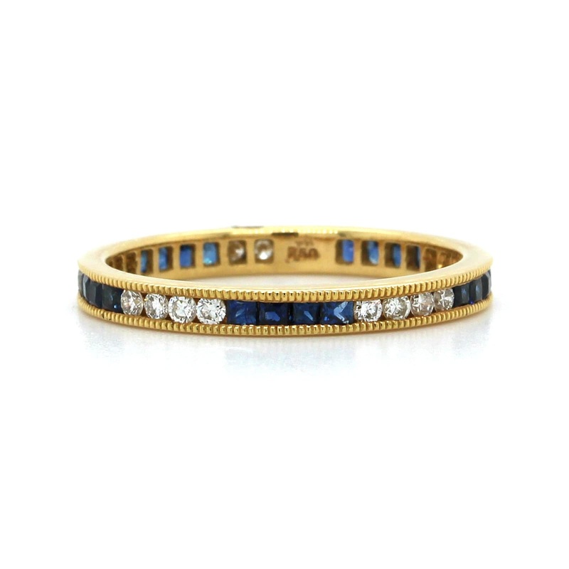 18K Yellow Gold Sapphire and Diamond Eternity Band