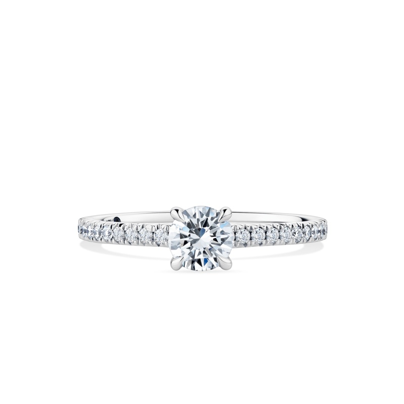 The 1917 Diamond Solitaire Engagement Ring has timeless beauty and aspectacular sparkle. With 0.73ct diamonds and crafted with lustrous 18ct White Gold, this dazzling solitaire engagement ring is a breathtaking symbol of unconditional love. The centre diamond is perfectly set among four slim claws, giving this timeless ring a feminine spirit with clean, modern lines, thanks to the slender band of micro-pav-set diamonds.The inside of the ring holds a secret Australian Sapphire, hinting at Wallace Bishops heritage.