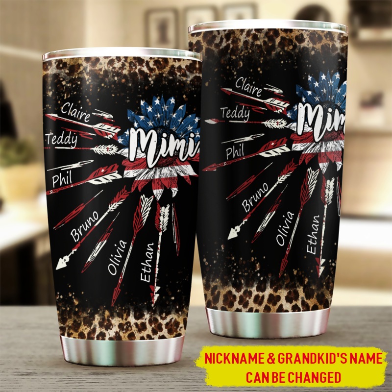 20 oz Tumbler 20 oz Grandma With Grandkids Sunflower Arrow Flag USA Tumbler Cup with Lid