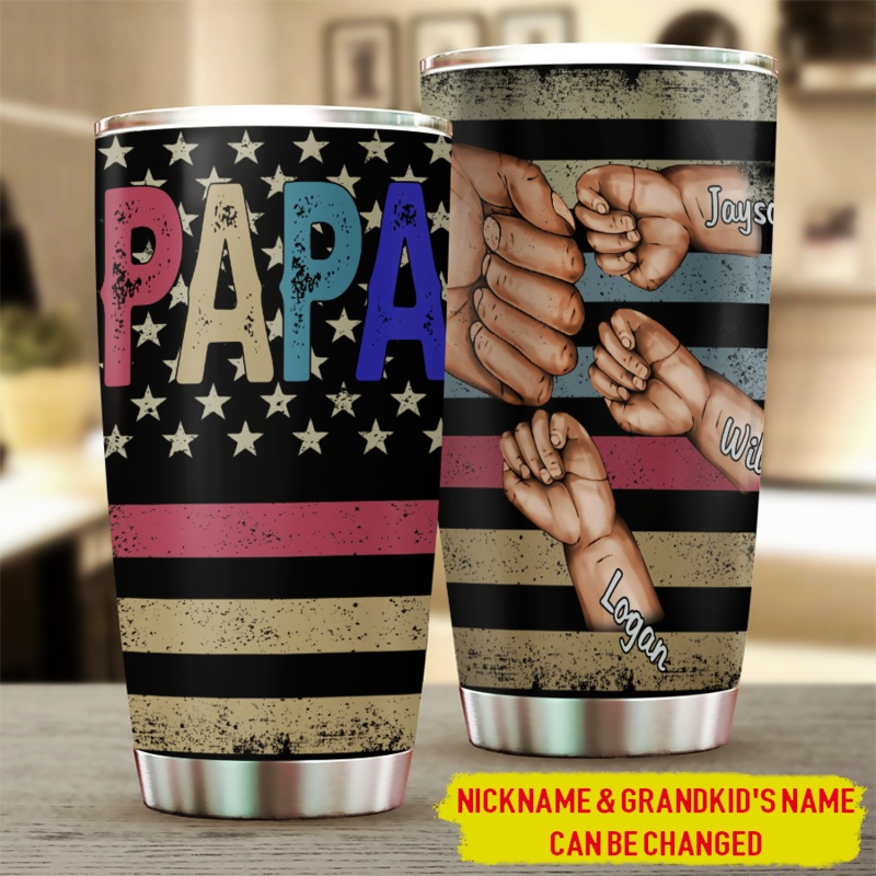 20 oz Personalized Papa Grandkids Hands Flag Tumbler Cup with LidGift of Love: A meaningful gift for your friends, family members, wife/husband, bridesmaid/groomsmen, coworkers on birthdays, Mother's Day, Fathers Day, wedding, anniversary, Christmas, engag