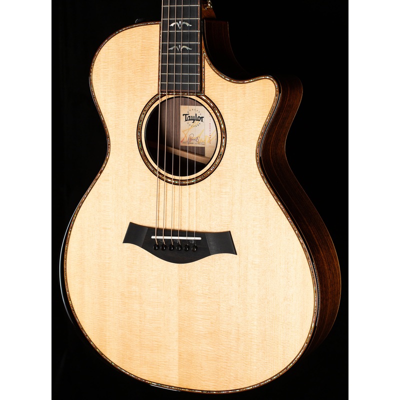 The V-Class bracing upgrade brings a new level of power and tonal complexity to this already sophisticated rosewood/spruce Grand Concert guitar. On the cutaway 912ce, the playing comfort and sonic focus of the smaller body now yield a surprising level of midrange warmth and treble boldness, fueled by improvements to volume and sustain from the new bracing scheme, making this a more musically expressive guitar for fingerstyle players and light strummers. The contoured ebony armrest supplies a beautiful ergonomic touch that elevates both the playing experience and aesthetic. Other refined details include ebony binding, koa purfling, and abalone and mother-of-pearl Ascension inlays and trim. The guitar ships with ES2 electronics in a Taylor deluxe hardshell case.