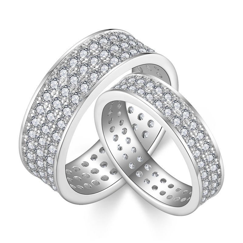 To maintain the luster of your 2025 new full diamond ring men and women two, three-row moissanite pair ring S925 silver ring, gently clean it with a soft cloth and store it in a cool, dry place when not in use.