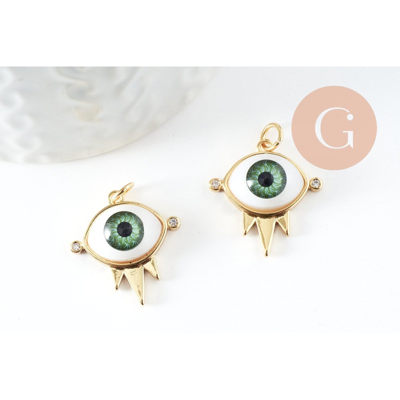 20K gold-plated brass resin eye pendant, gold-plated brass jewelry creation , eye jewel, 21mm, unit An eye pendant with a green iris to create protective and lucky talisman jewelry. Dimensions: Length: 21mm Width: 20mm Thickness: 16.7mm Ring: 5x0.8mm. Sold