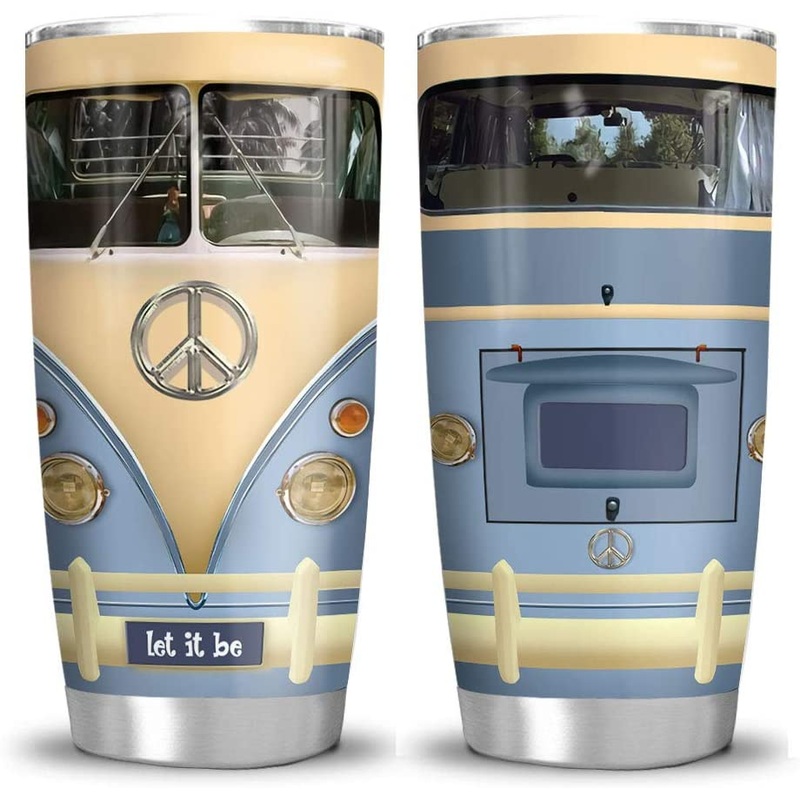 20oz Blue Retro Hippie Van Tumbler Cup with Lid, Double Wall Vacuum Sporty Thermos Insulated Travel Coffee MugGift of Love: A meaningful gift for your friends, family members, wife/husband, bridesmaid/groomsmen, coworkers on birthdays, Mother's Day, Father