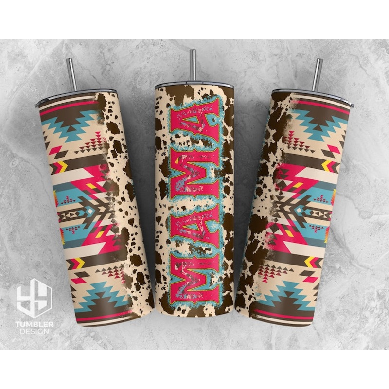 20OZ SKINNY TUMBLER Aztec Tribal Mama Tumbler, Southwest Print, Cowhide Navajo Mom Tumbler Wrap, Gift For MomGift of Love: A meaningful gift for your friends, family members, wife/husband, bridesmaid/groomsmen, coworkers on birthdays, Mother's Day, Fathers