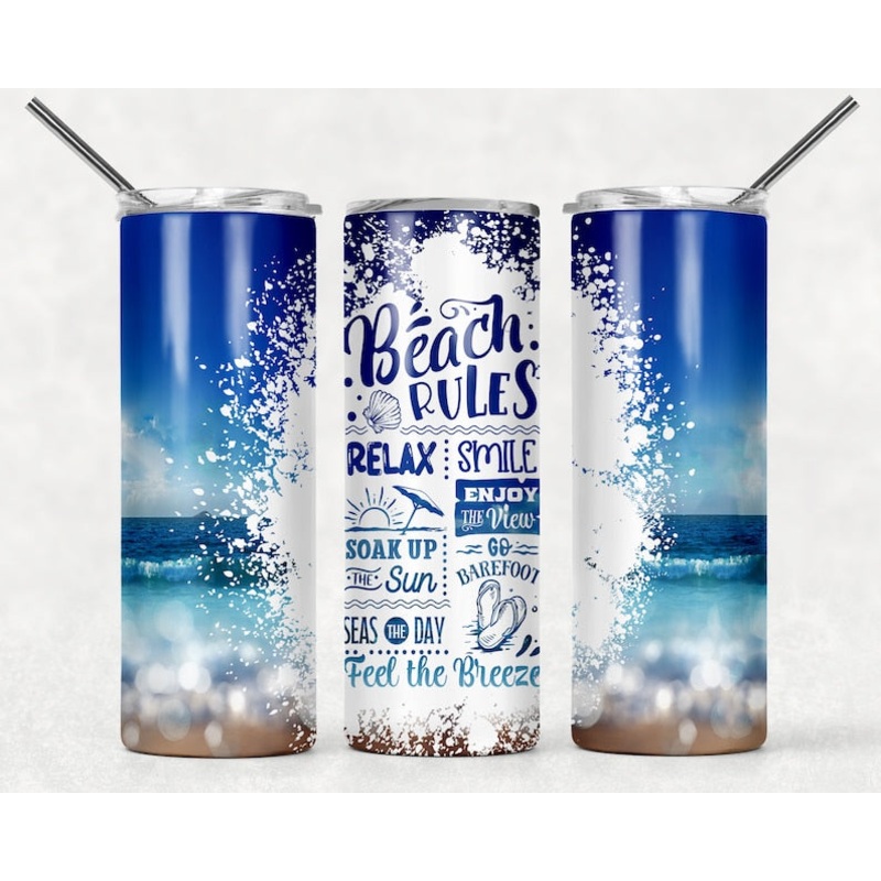 20OZ Skinny Tumbler, Beach Tumbler Wrap Summer Beach Rules