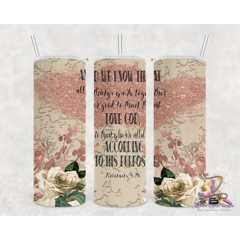 20OZ Skinny Tumbler, Bible Verse Romans 8:28