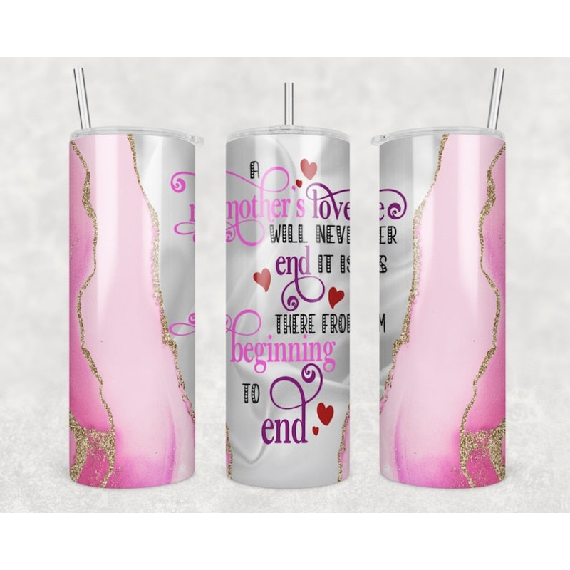 20OZ Skinny Tumbler, Pink & Gold Agate With White Satin Skinny Tumbler Wrap Always My Mother, Forever My Friend