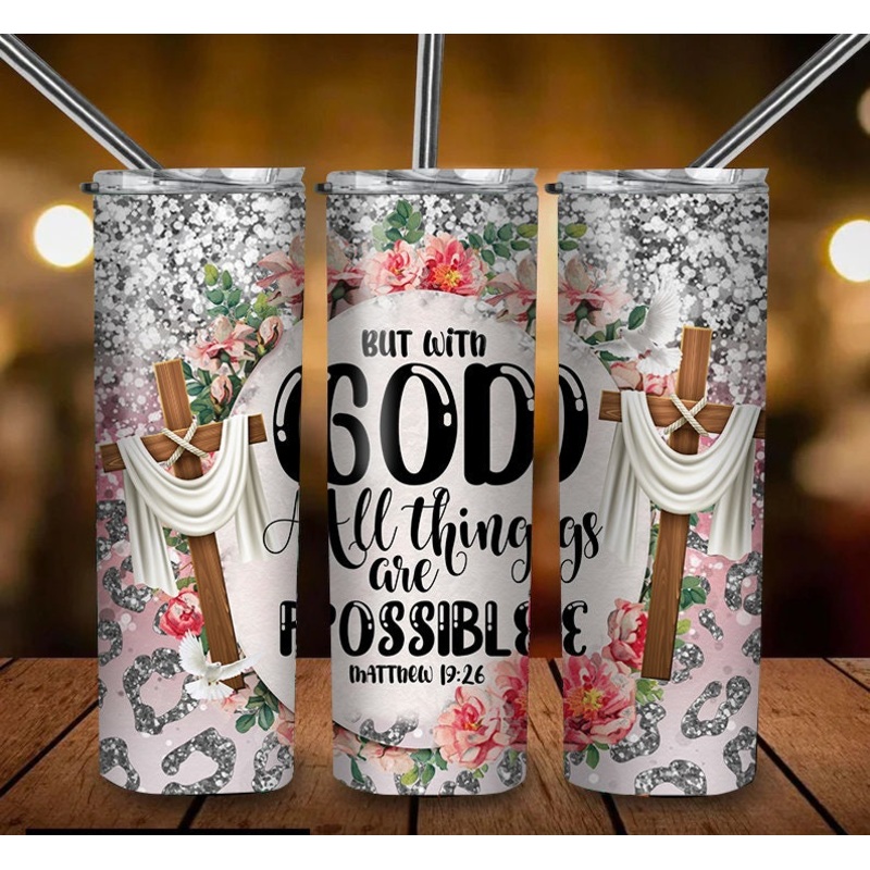 20OZ Skinny Tumbler, Tumbler With GOD All Things are Possible, Bible Verse Religious Tumbler Straight/Warped Gift of Love: A meaningful gift for your friends, family members, wife/husband, bridesmaid/groomsmen, coworkers on birthdays, Mother's Day, Fathers