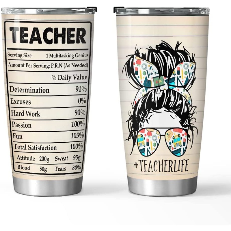 20oz Teacher Life Facts, Gift For Teachers, Teacher Inspiraiton Tumbler Cup with Lid, Double Wall Vacuum Thermos Insulated Travel Coffee MugGift of Love: A meaningful gift for your friends, family members, wife/husband, bridesmaid/groomsmen, coworkers on b
