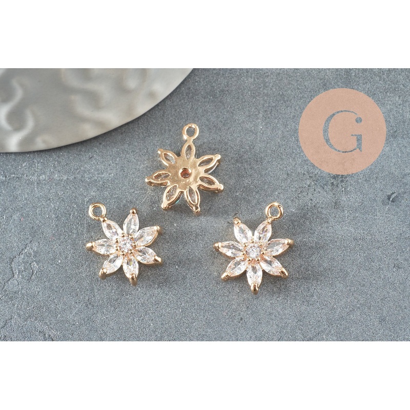 This 24 carat gold flower-shaped pendant , decorated with white zircons , measures 15 mm and brings a touch of elegance and shine to your creations.