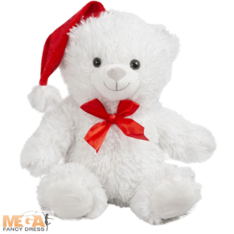 25cm Christmas Bear with Hat & Glitter Effect Bring the warmth and sparkle of the Christmas season into your home with our 25cm Christmas Bear, a delightful addition to your soft toy collection or a thoughtful gift. This huggable bear, dressed in its holid