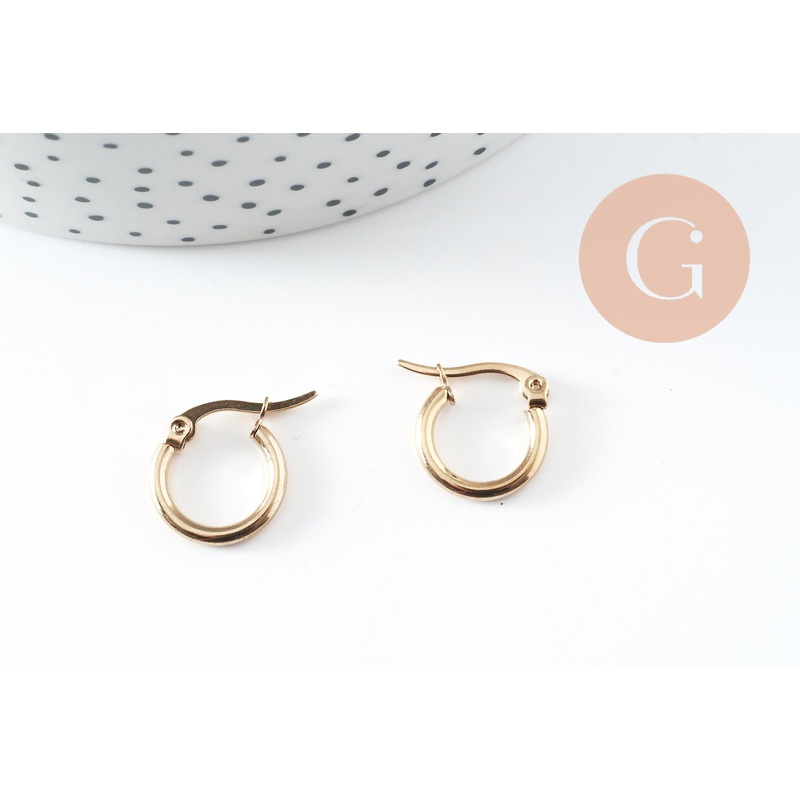 304 stainless steel gold-plated hoop earrings 15mm, gold-plated jewelry, jewelry creation, pierced ear, nickel-free, steel earrings, pair, G0352