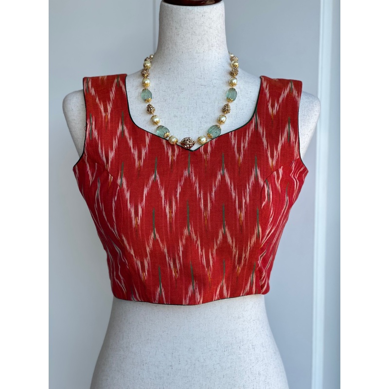 34 size sleeveless Ikkat blouse | Saree blouses in USA S(34)