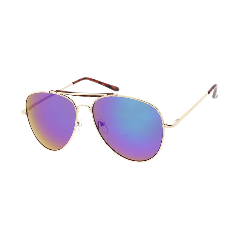 3581GLD/RV Unisex Metal Large Aviator Brow Bar Gold Frame w/ Color Mirror Lens