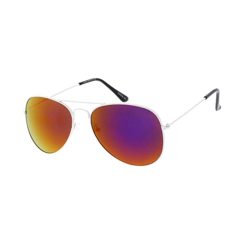 3594WHT/RV Unisex Metal Large Aviator White Frame w/ Color Mirror Lens