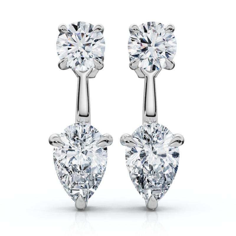 Elevate your look with these elegant 3Ct Diamond Studs & Earring Jackets. This versatile pair features a brilliant solitaire diamond stud, from which a graceful pear-shaped diamond jacket hangs below. This stunning two-in-one design allows you to wear the