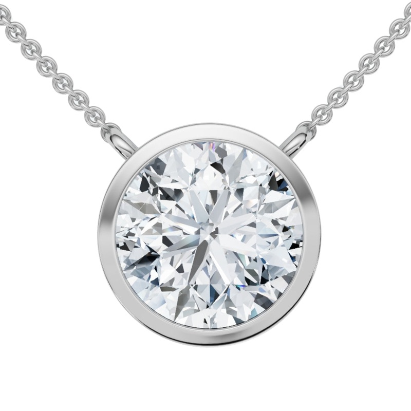 This classic pendant necklace features a 3ct solitaire lab-grown diamond set in a sleek bezel setting. The pendant hangs gracefully from an 18" matching gold chain, available in white, yellow, or rose gold.https://www.dropbox.com/scl/fi/kc6yr2u6oocilp3313d
