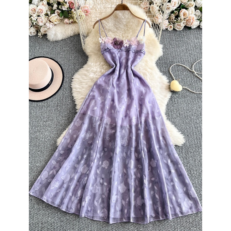 3d Flower Spaghetti Strap Dress Fairy Dress L57