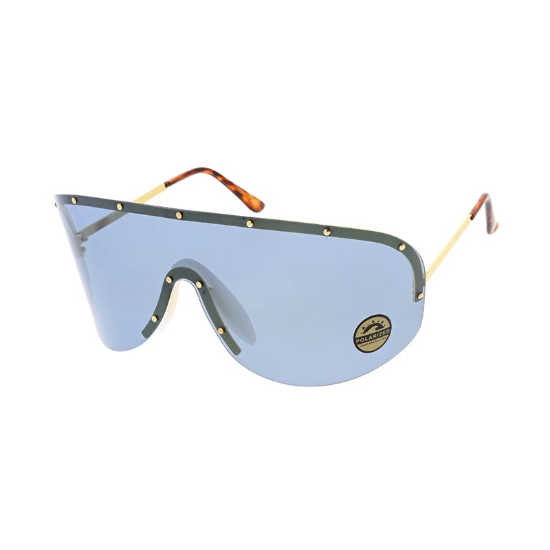 4689COL Women’s Oversized Metal Studded Rimless Shield w/ Color Lens