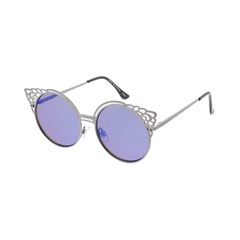 4798RV Women’s Metal Large Winged Round Cat Eye Frame w/ Color Mirror Lens