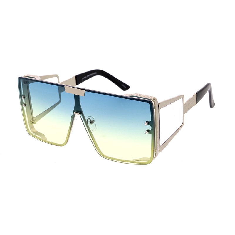 5026COL Unisex Metal Large Rectangular Rimless Shield w/ Wide Temples and Two Tone Lens