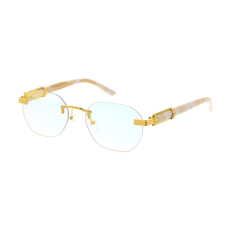 5120REV Unisex Metal Small Rimless Oval Frame w/ Woodgrain Print Temples and Color Spectrum Lens