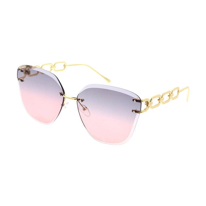5183 Women’s Metal Large Cat Eye Chain Rimless Frame w/ Diamond Cut Lens