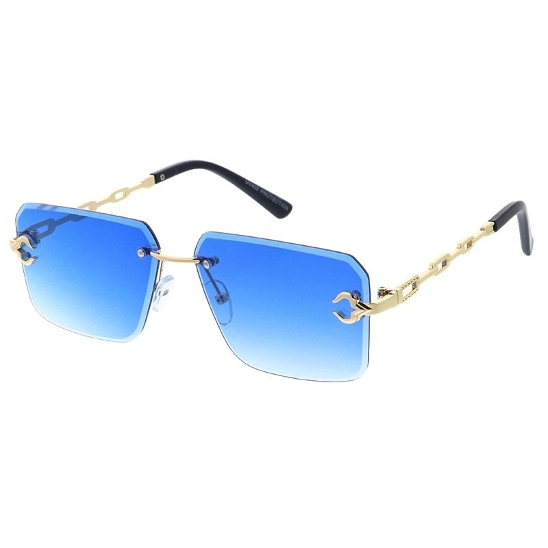 5242 Unisex Metal Medium Rectangular Rimless Frame w/ Diamond Cut Lens & Metal Accent