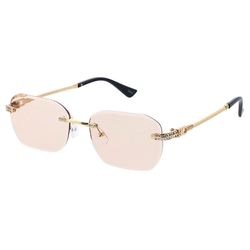 5243RH Unisex Metal Medium Rectangular Rimless Frame w/ Diamond Cut Lens & Rhinestone Accent