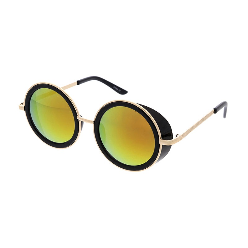 6243RV Unisex Combo Large Round Side Shield Steampunk Frame w/ Color Mirror Lens