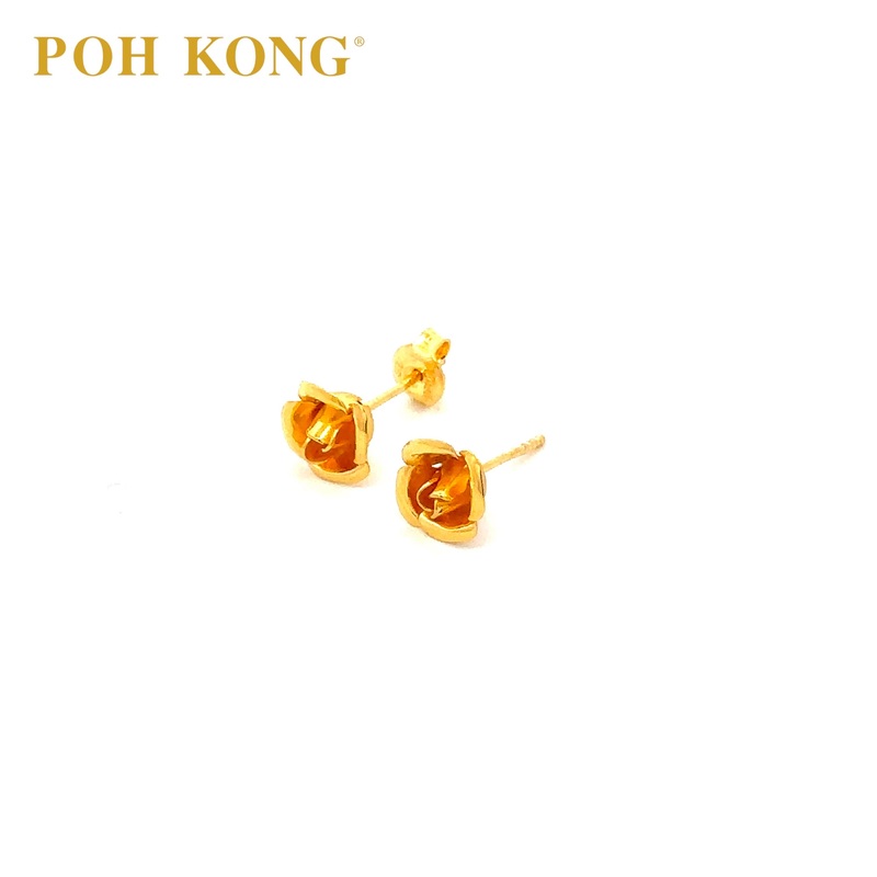 916/22K 3D Yellow Gold Rose Stud Earrings _S