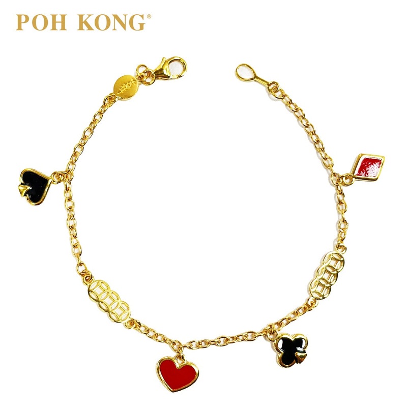 916/22K Gold Auspicious Four Suits Of Poker Cards Bracelet